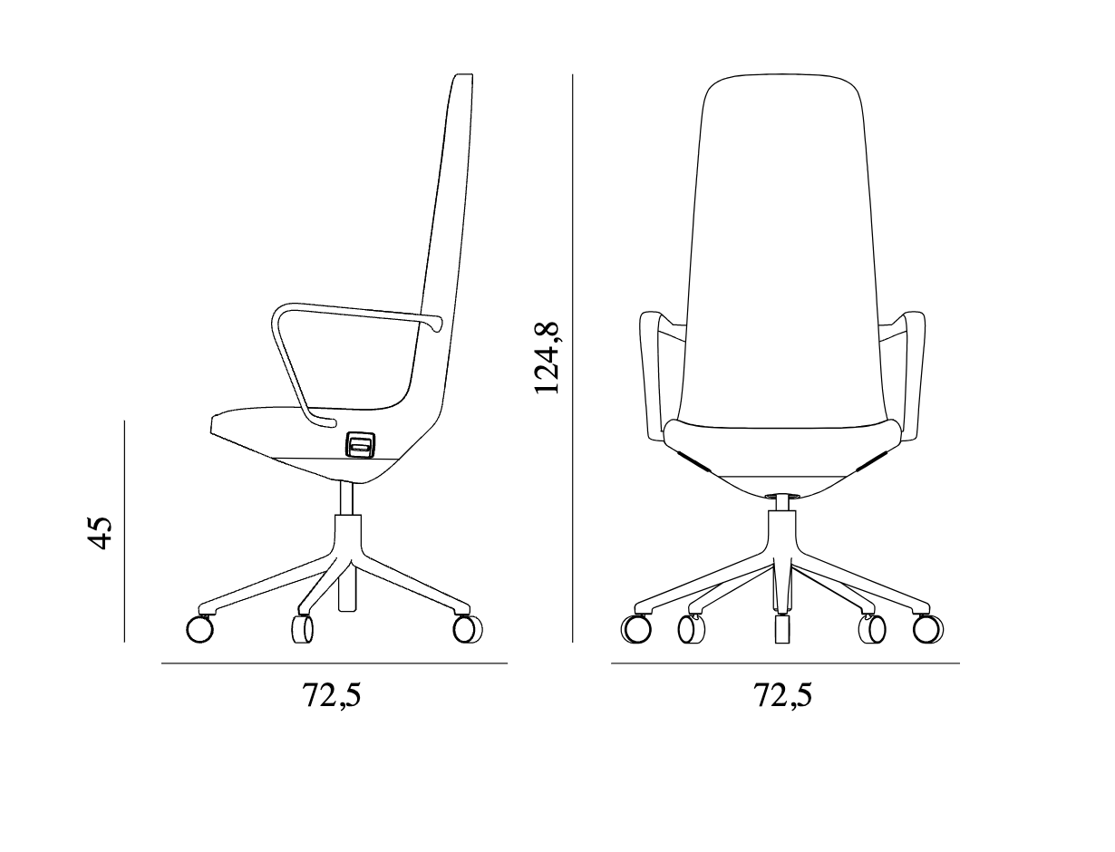 Upholstered office chair with off High 5W armrests with an aluminum base