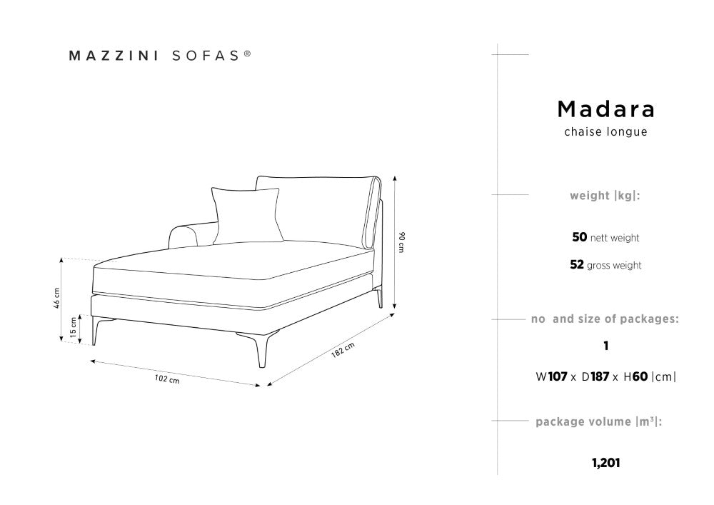 Wyważone proporcje wprowadzą nutę elegancji do salonu, a detale takie jak łączenia szwów, dodadzą szyku każdej aranżacji. Stylowe nóżki dodają całości lekkości i wyjątkowego charakteru. Półokrągły podłokietnik w ciekawy sposób przełamują minimalistyczny kształt bryły Madara. W połączeniu z innymi meblami z kolekcji szezlong stworzy niezwykły komplet wypoczynkowy do salonu dla całej rodziny.