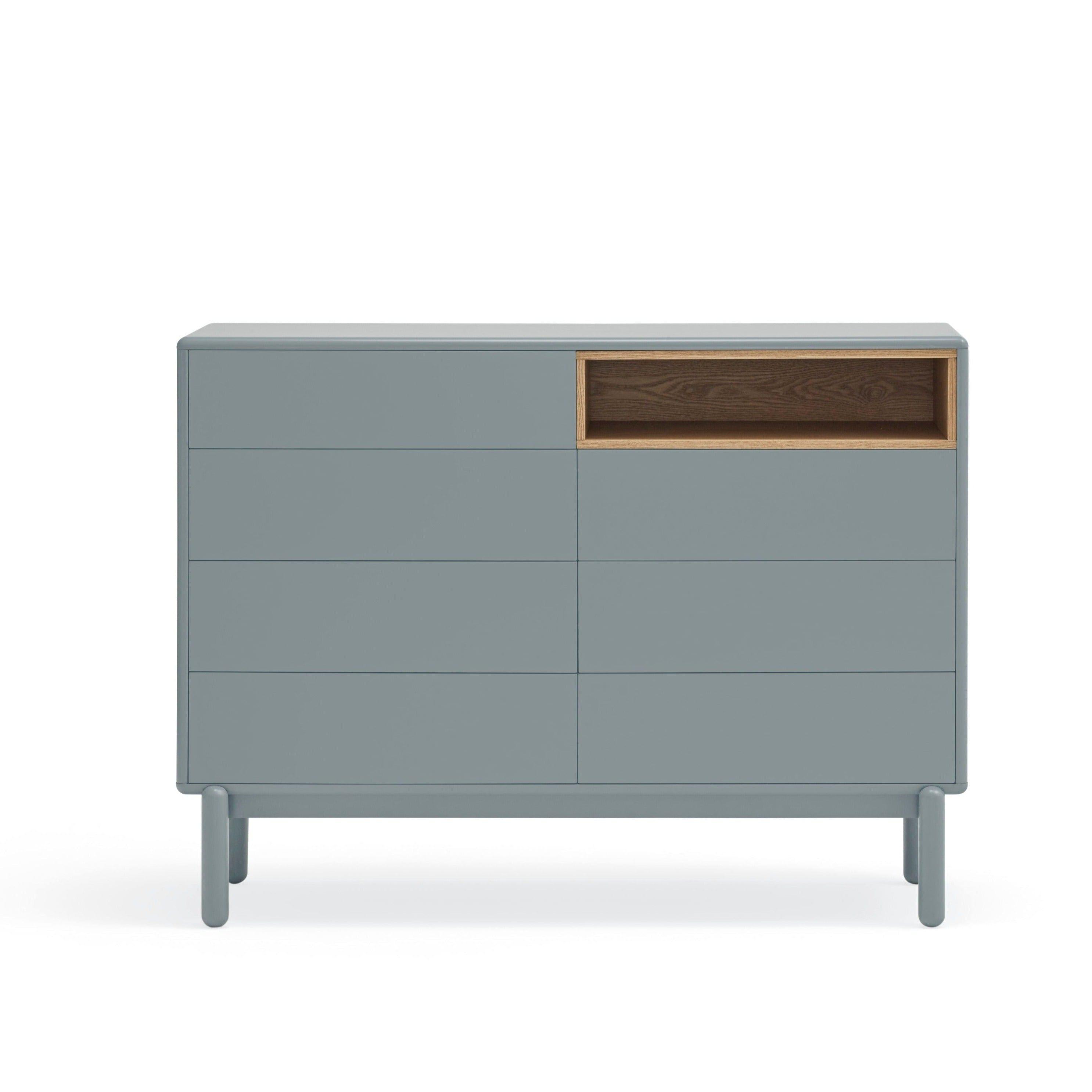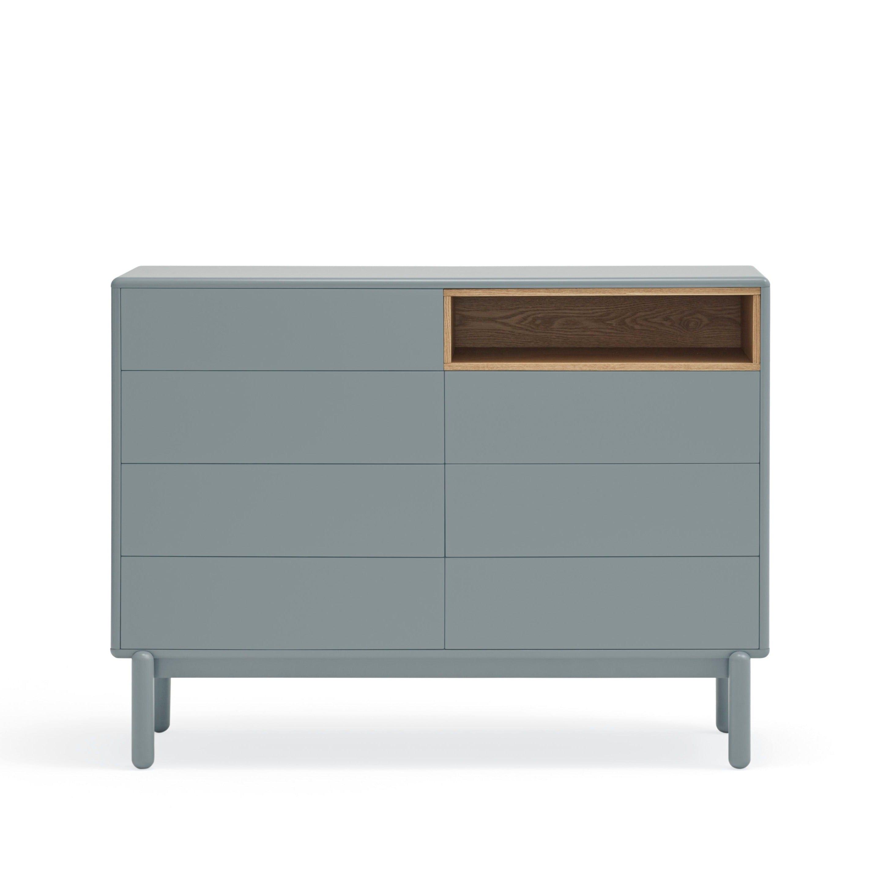 Funkcjonalna szafka Corvo spełni oczekiwania nawet najbardziej wymagających. Dzięki połączeniu naturalnej struktury drewna z eleganckim, szarym kolorem szafka do salonu Corvo prezentuje się jak z okładki magazynu wnętrzarskiego. Wygodne szuflady sprawią, że każda przestrzeń stanie się lepiej zorganizowana.