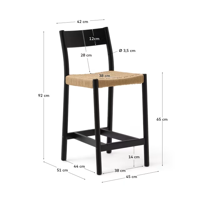 Wyjątkowość czarnego krzesła Yalia nie kończy się na jego konstrukcji. Siedzisko wykonane z ręcznie plecionej liny papierowej to nie tylko wyraz rzemieślniczej precyzji, ale również zapewnia niezrównany komfort użytkowania. Każde krzesło jest starannie wykończone, podkreślając jego naturalne piękno i wyjątkowy charakter.