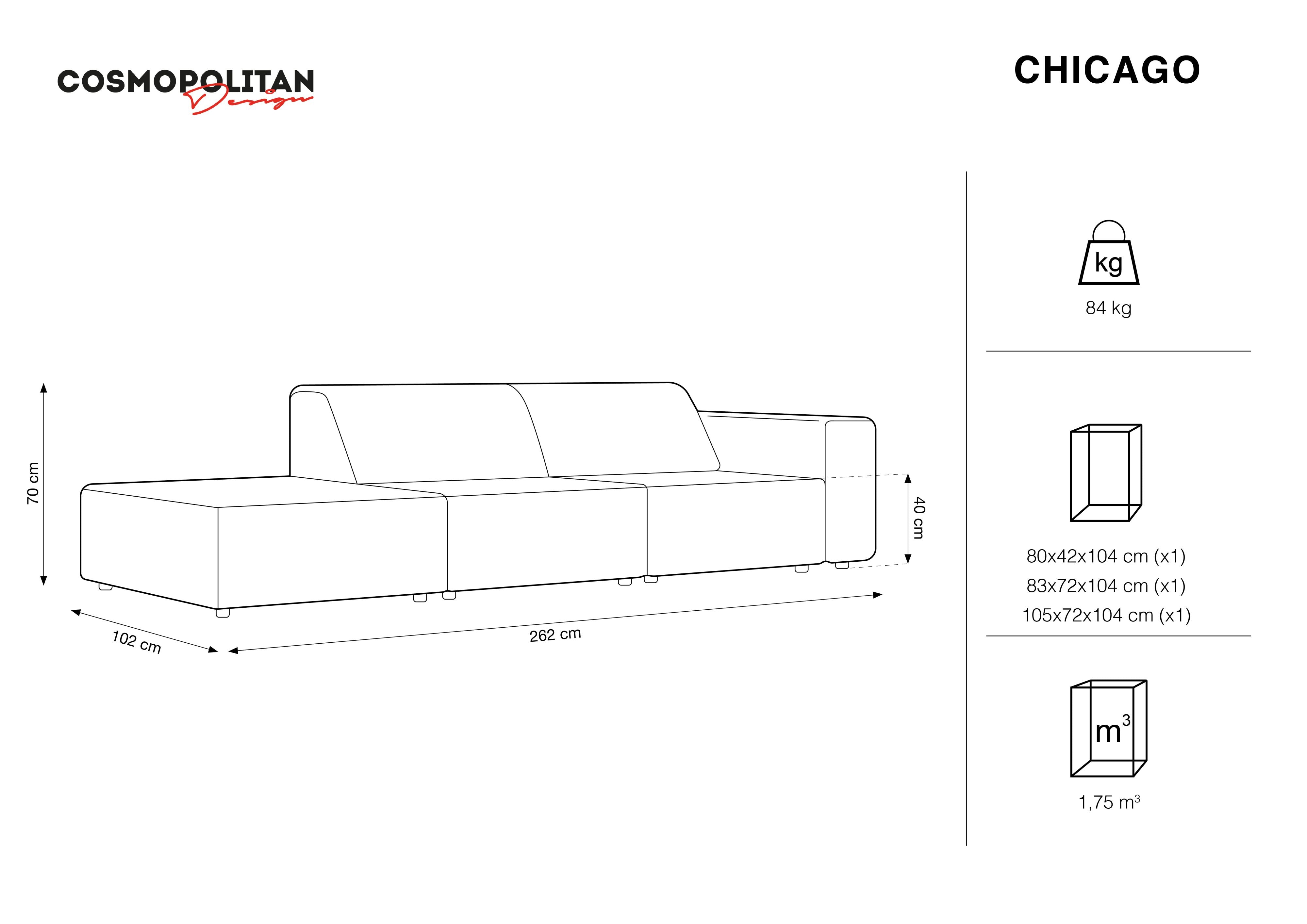 Sofa aksamitna lewostronna 3-osobowa CHICAGO jasnoszary