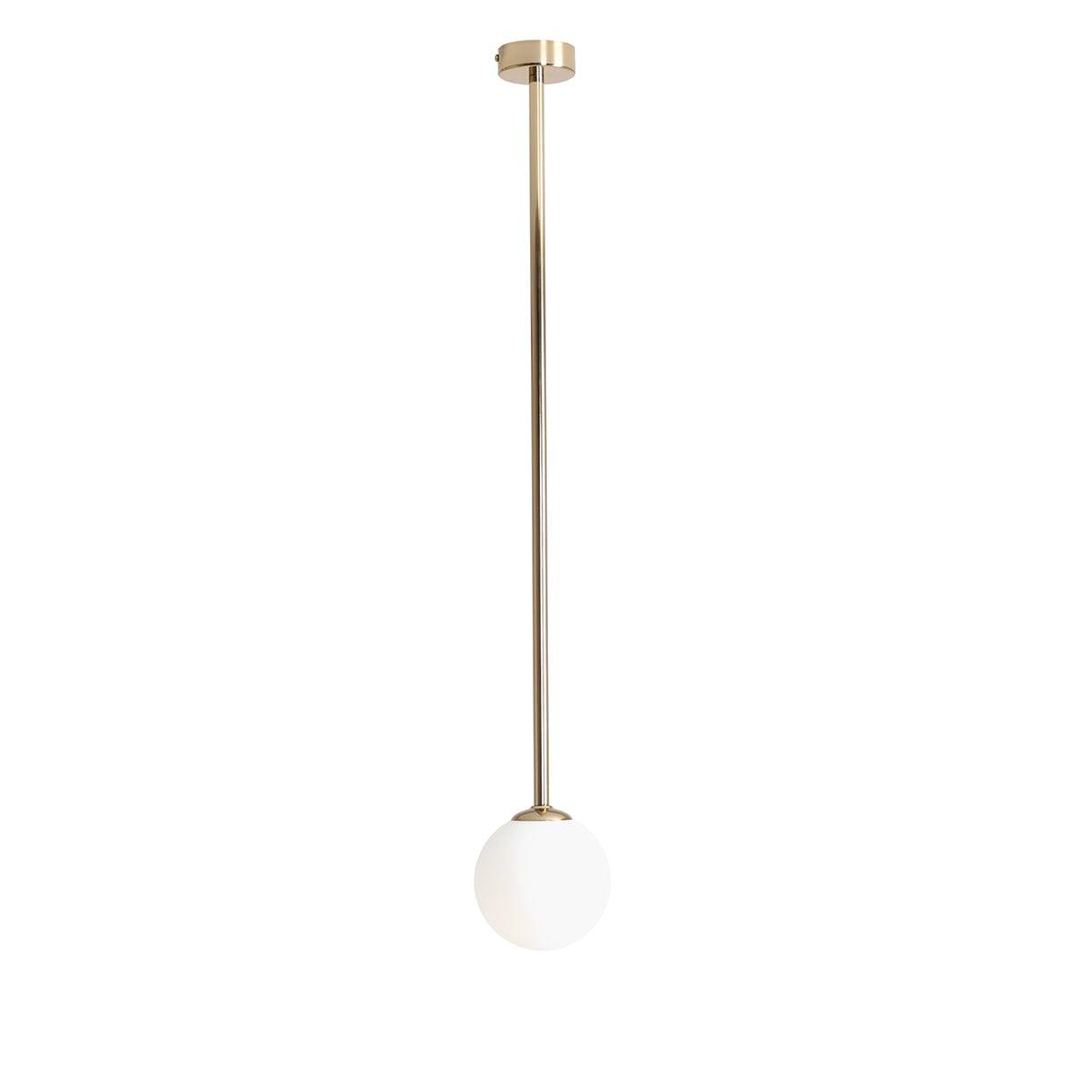 Prosta forma i nowoczesna konstrukcja idealnie współgrają z delikatnie mlecznym kloszem, tworząc przy tym spójną całość, od której trudno oderwać wzrok. Złoty plafon sprawdzi się w sypialni, łazience, biurze, a nawet jadalni.