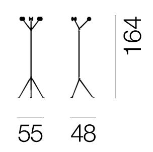 Wieszak podłogowy projektu Ronan & Erwan Bouroullec to eleganckie i funkcjonalne rozwiązanie do przechowywania odzieży wierzchniej. Wykonany z metalu i drewna, łączy solidną konstrukcję z dopracowaną estetyką. Trzy równoległe rury stalowe połączone u góry i u dołu tworzą stabilną, trójkątną podstawę. Każda z rur posiada wypustki, które umożliwiają zawieszanie ubrań, a zakończenia haczyków są odwrócone, co zapobiega zsuwaniu się odzieży.