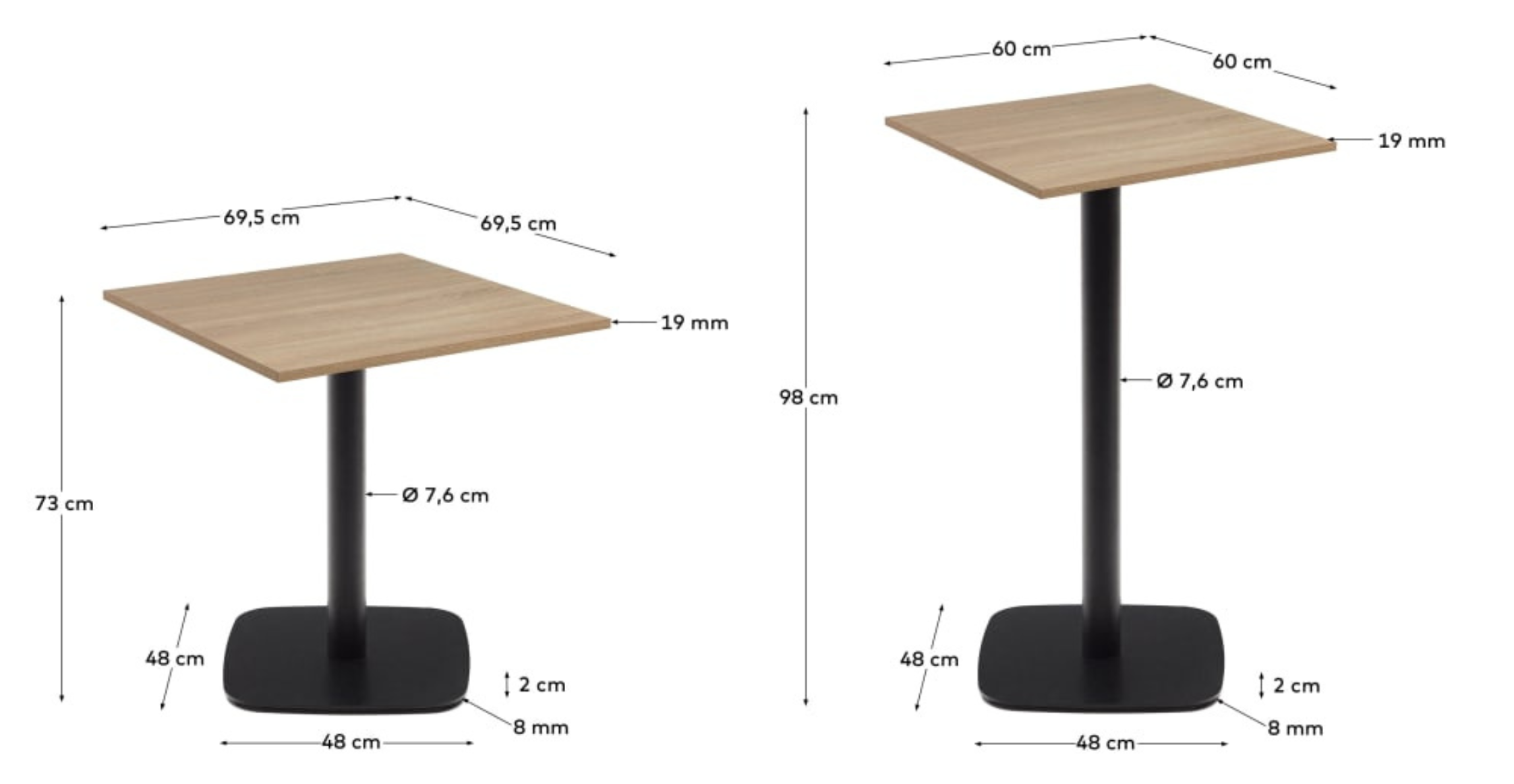 Kombinacja wykończenia dębowego blatu kwadratowego z czarną metalową podstawą nadaje stołowi Dina stylowy wygląd, który pasuje zarówno do nowoczesnych, jak i klasycznych wnętrz, dodając im wyjątkowego charakteru.