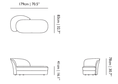 Szezlong Aldora, zaprojektowany przez Cristinę Celestino, jest dostępny z podłokietnikiem po lewej lub prawej stronie. To współczesna interpretacja klasycznej koncepcji, gdzie miękkie kobiece kształty, inspirowane wdzięcznymi płatkami kalii, nawiązują do uroku mediolańskiej burżuazyjnej dekadencji.