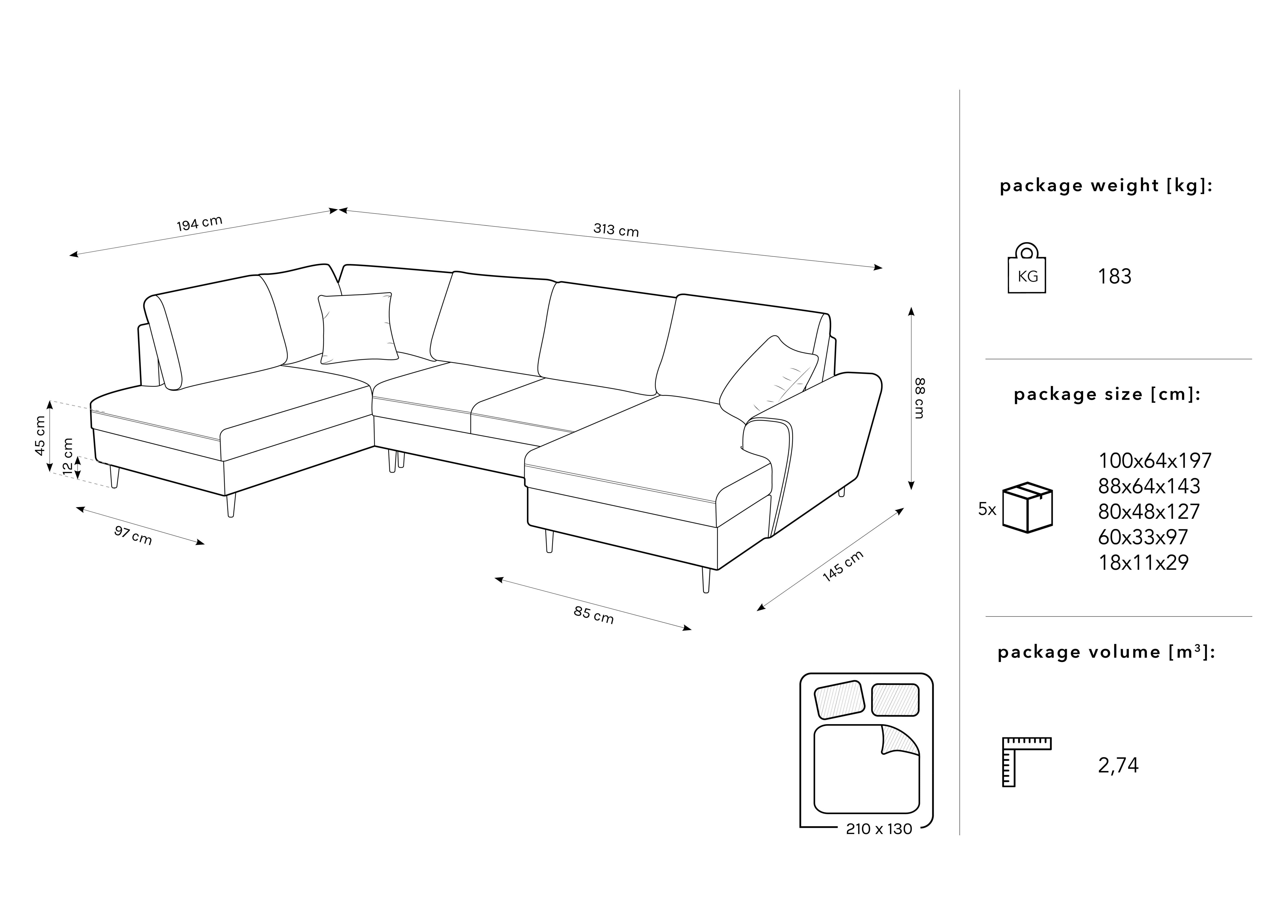 Powierzchnia spania (cm): 210x130