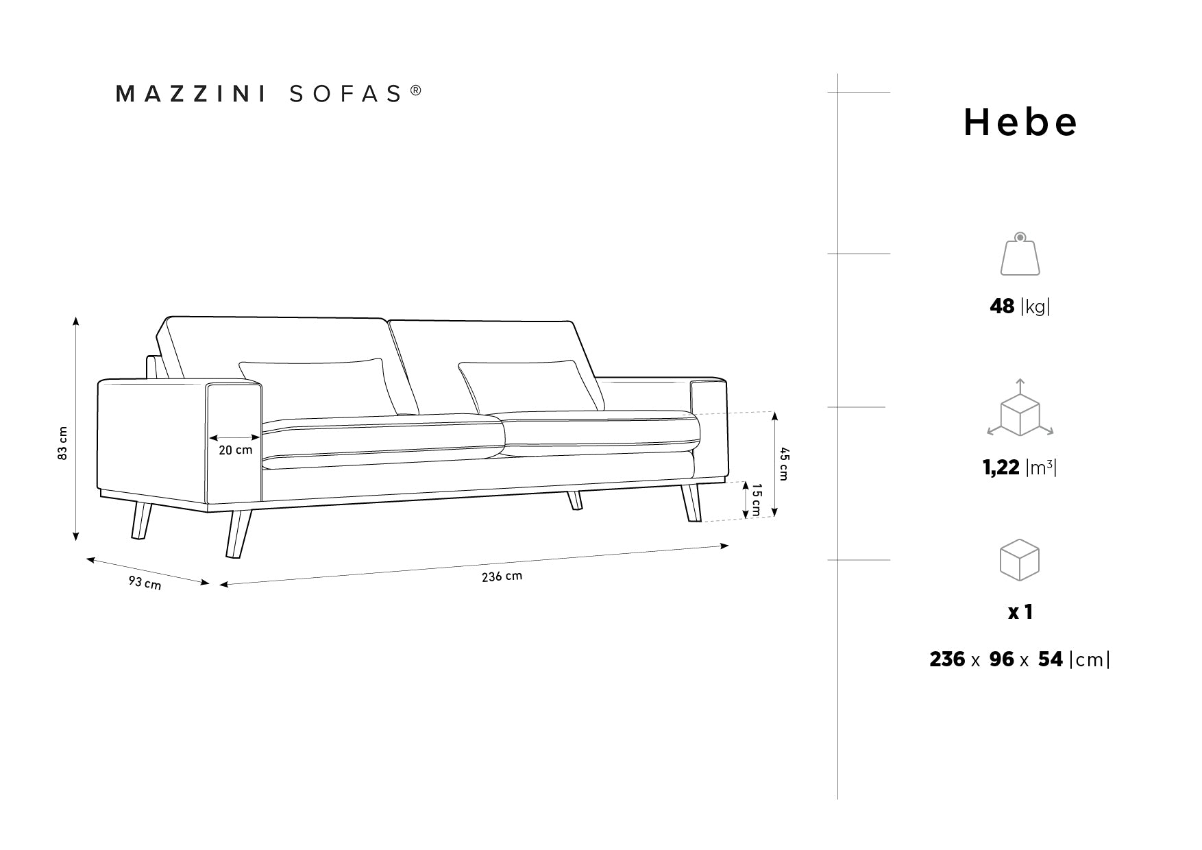 Wymiary: 236x93x83 cm